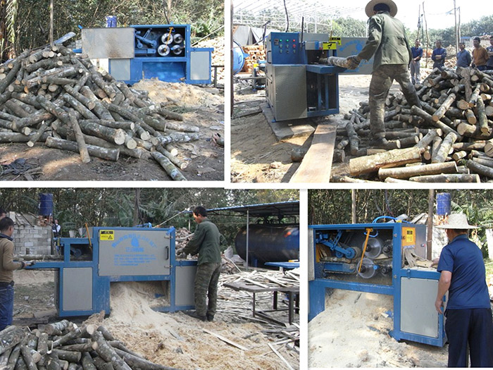 海南島-原木多片鋸150型鋸橡膠木加工現場
